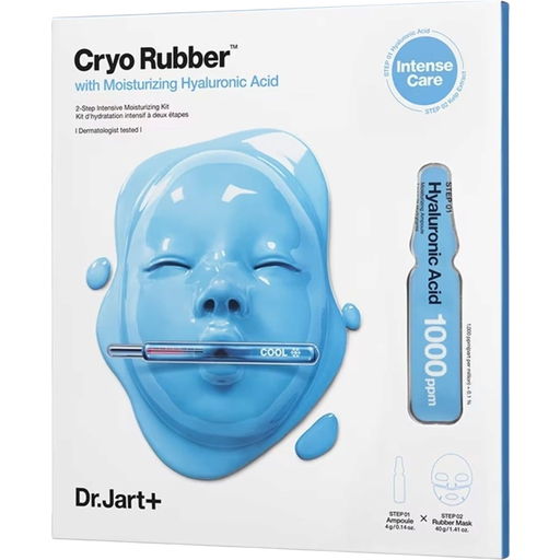 The Cryo Rubberâ„¢ Moisture Mask by Dr Jart+ is a smart face mask inspired by the findings of cryotherapy (cold therapy). In addition to the mask, you also receive an ampoule filled with a gel-like serum. This provides the skin with intensive moisture thanks to highly concentrated hyaluronic acid, which is then skilfully locked in by the mask. This combination provides a pleasant cooling effect. You will be rewarded with a fresh and soft skin feel in no time.