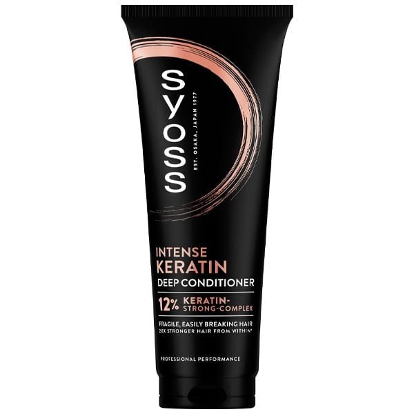 - After shampooing, apply a generous amount of Syoss Intense Keratin Deep Conditioner to damp hair.
